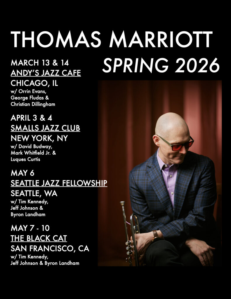 Earlier this year Thomas Marriott became the youngest inductee into the Seattle Jazz Hall Of Fame. He started playing professionally in 1992 and won his first “Golden Ear Award” in 1996. Thanks to Earshot Jazz for decades of support!